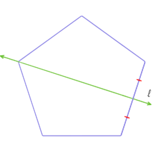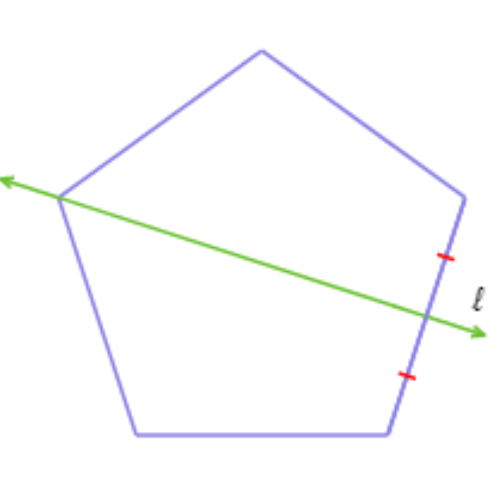Since n= 5 is odd and 𝓁 passes through a vertex and the midpoint of its opposite side, 𝓁 is a line of symmetry. So, this answer choice is correct: