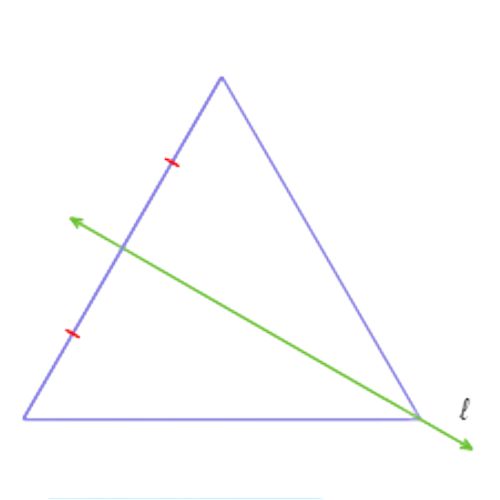 Since n = 3 is odd and 𝓁 passes through a vertex and the midpoint of its opposite side, 𝓁 is a line of symmetry. So, this answer choice is correct: