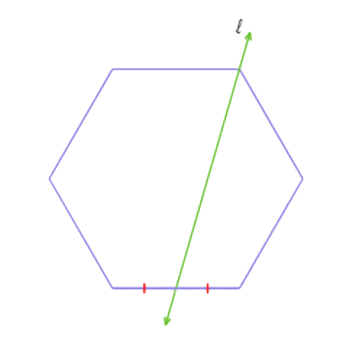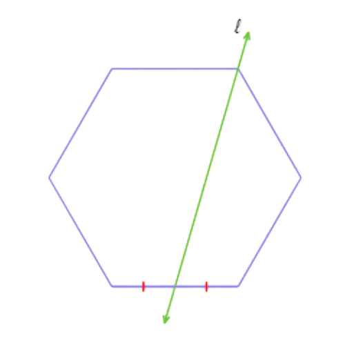 Since n= 6 is even and 𝓁 passes through a vertex and a midpoint, 𝓁 is not a line of symmetry. So, the reflection answer choice is not correct.